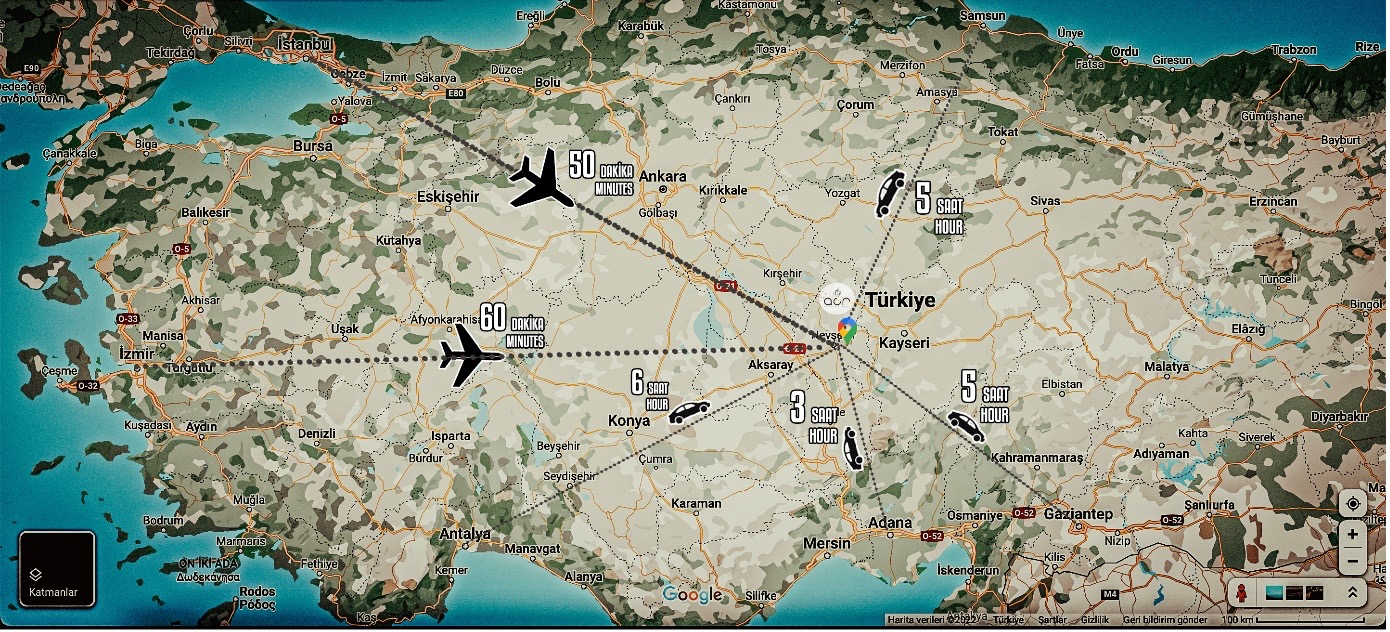 Adana’dan gelecek misafirlerimiz için araç mesafesi yaklaşık 3 saat